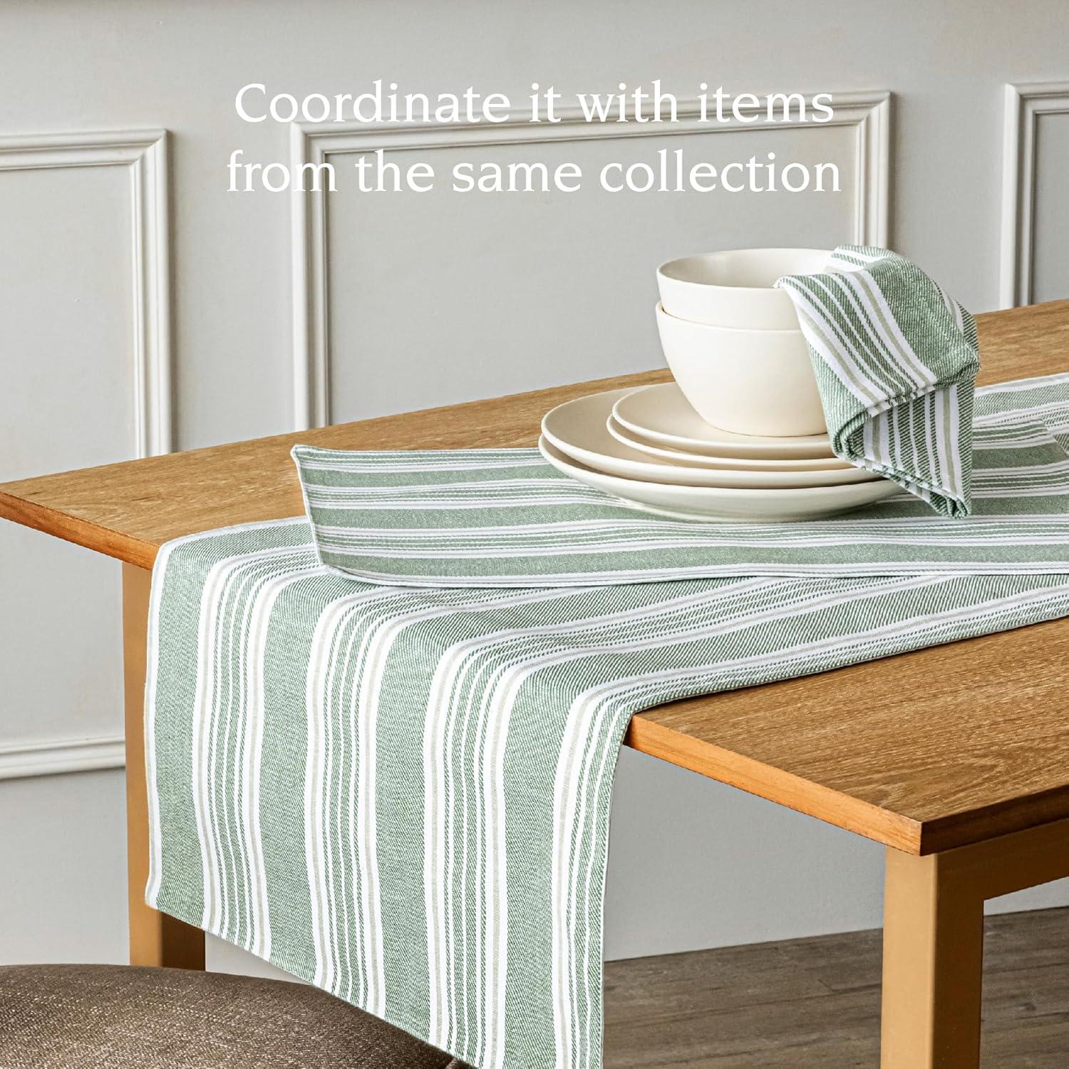 over&back 18x90 Washed 100% Linen Table Runner - Washable Table Runners for a Custom Home Decor Tablescape - Perfect for Coffee Table, Dinner Table, Living Room, and More - Pink(Green Woven Stripe)