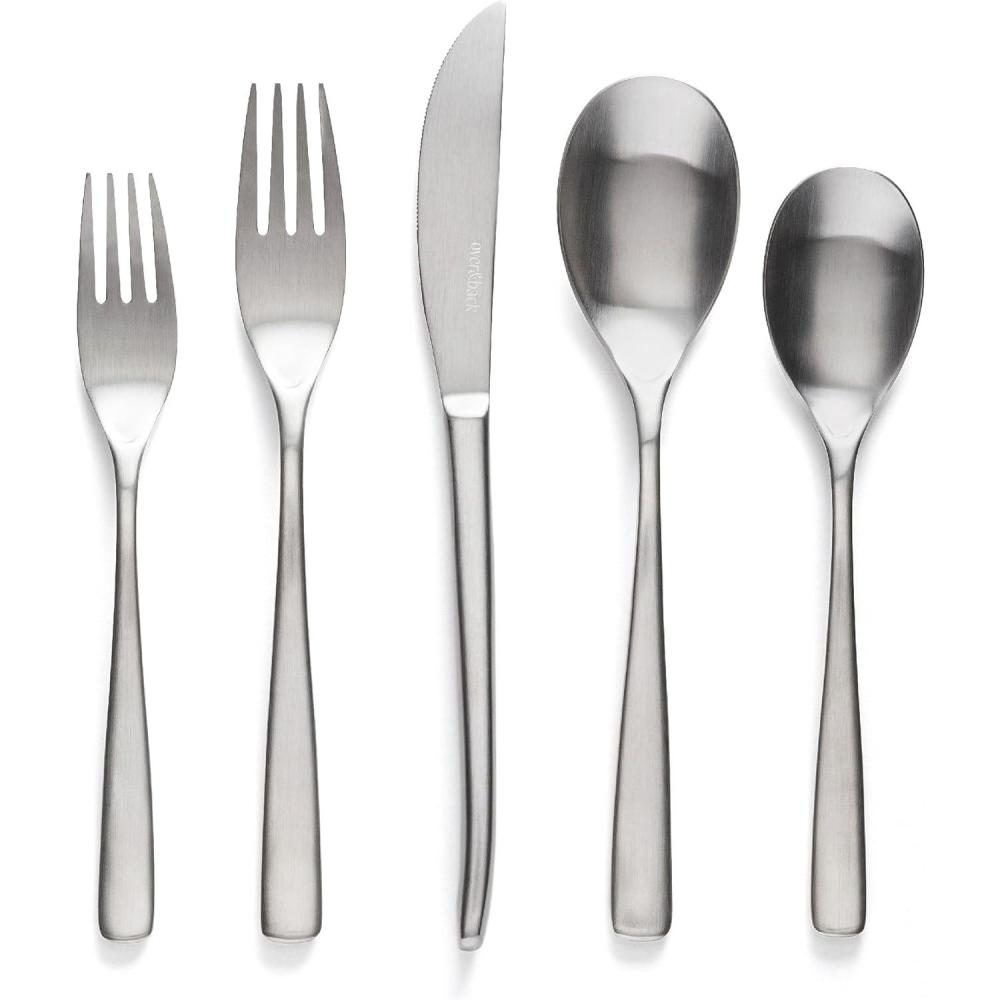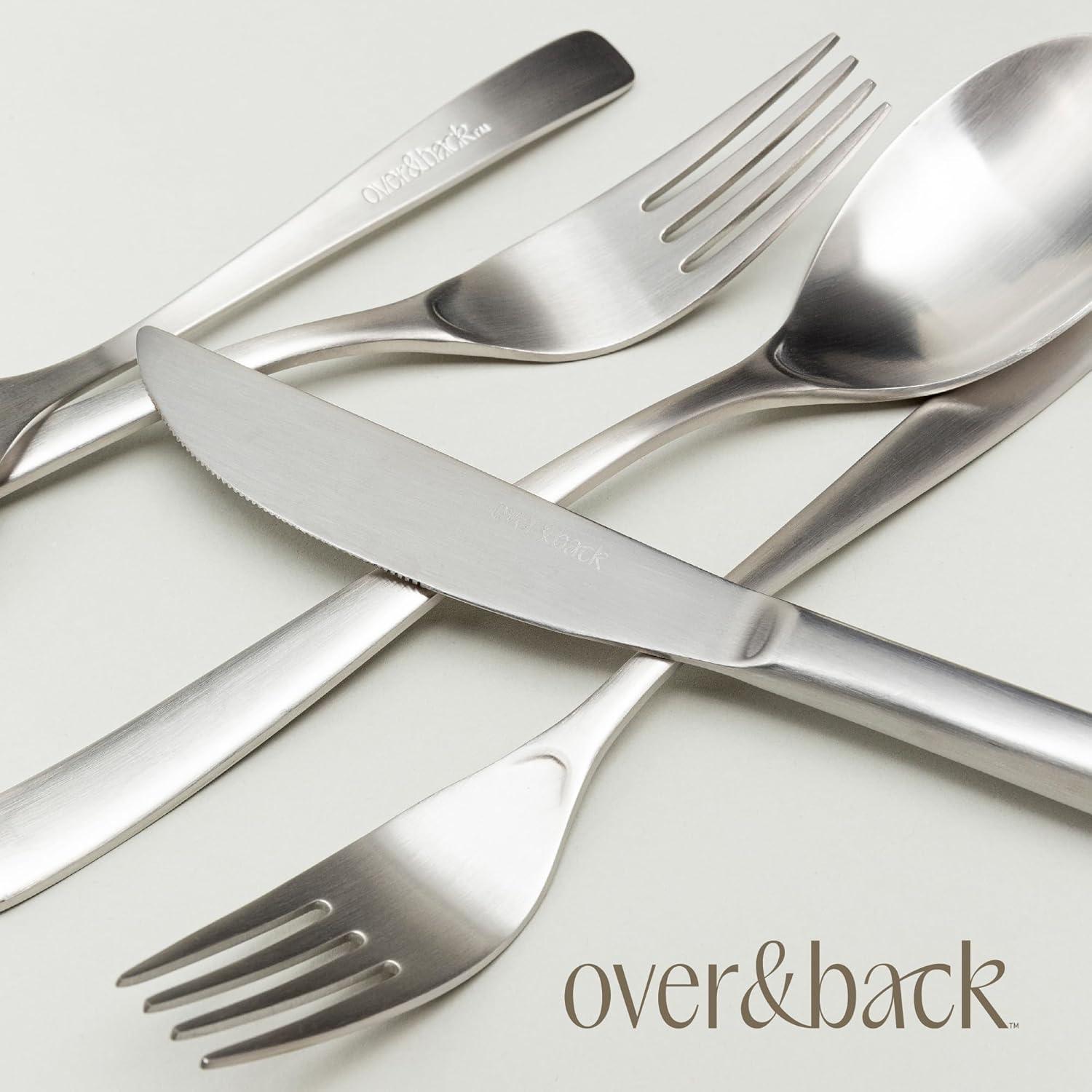 Get your hands on our exclusive over&back 20pc Curved Flatware Cutlery Set – Comes with 4 Dinner Forks, 4 Salad Forks, 4 Dinner Knives, 4 Dinner Spoons, and 4 Teaspoons – 18/8 Stainless Steel – Dishwasher-Safe – Matte Black(Brushed Stainless Steel) collection, now at a discounted price.