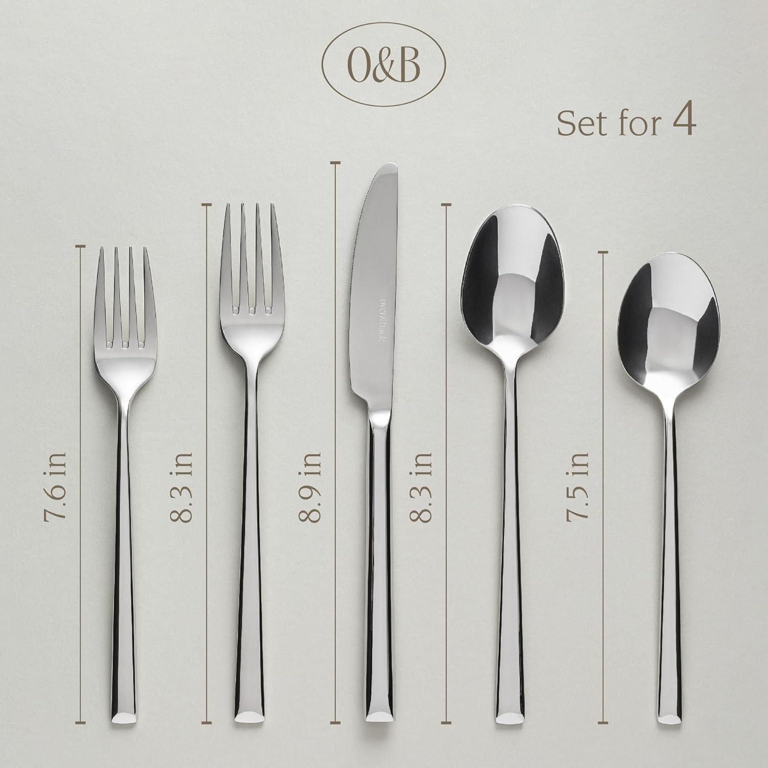over&back 20pc Modern Flatware Cutlery Set – Comes with 4 Dinner Forks, 4 Salad Forks, 4 Dinner Knives, 4 Dinner Spoons, and 4 Teaspoons – 18/8 Stainless Steel – Dishwasher-Safe – Mirror Stainless(Stainless Steel)