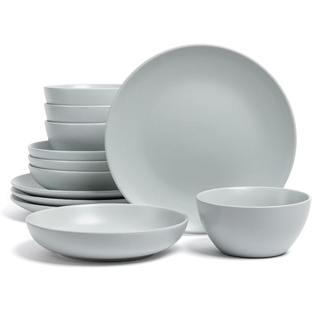 imageoverampampback Coupe Dinnerware Set  Stoneware Dishes  Comes with 4 Dinner Plates 4 Cereal Bowls and 4 Dinner Bowls  12Piece AllOccasion Place Settings  SemiMatte Fog Blue