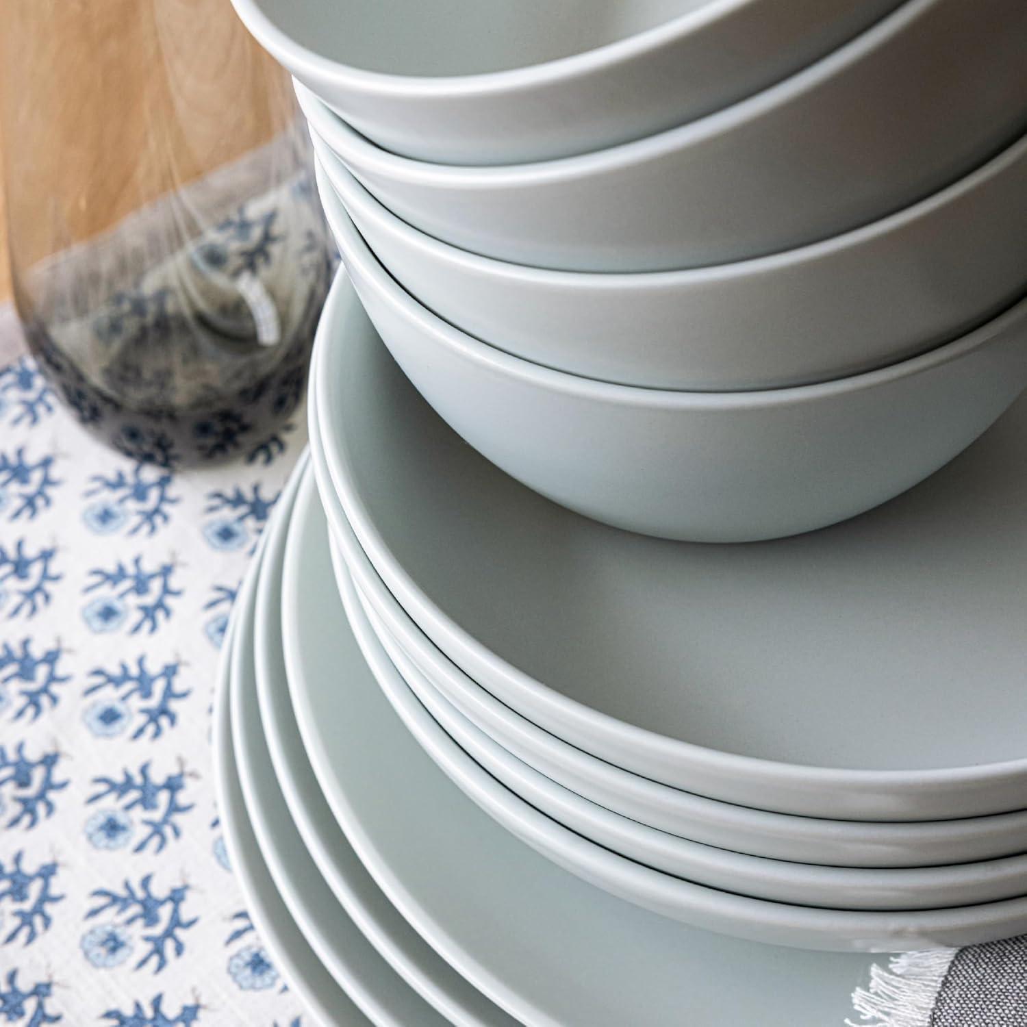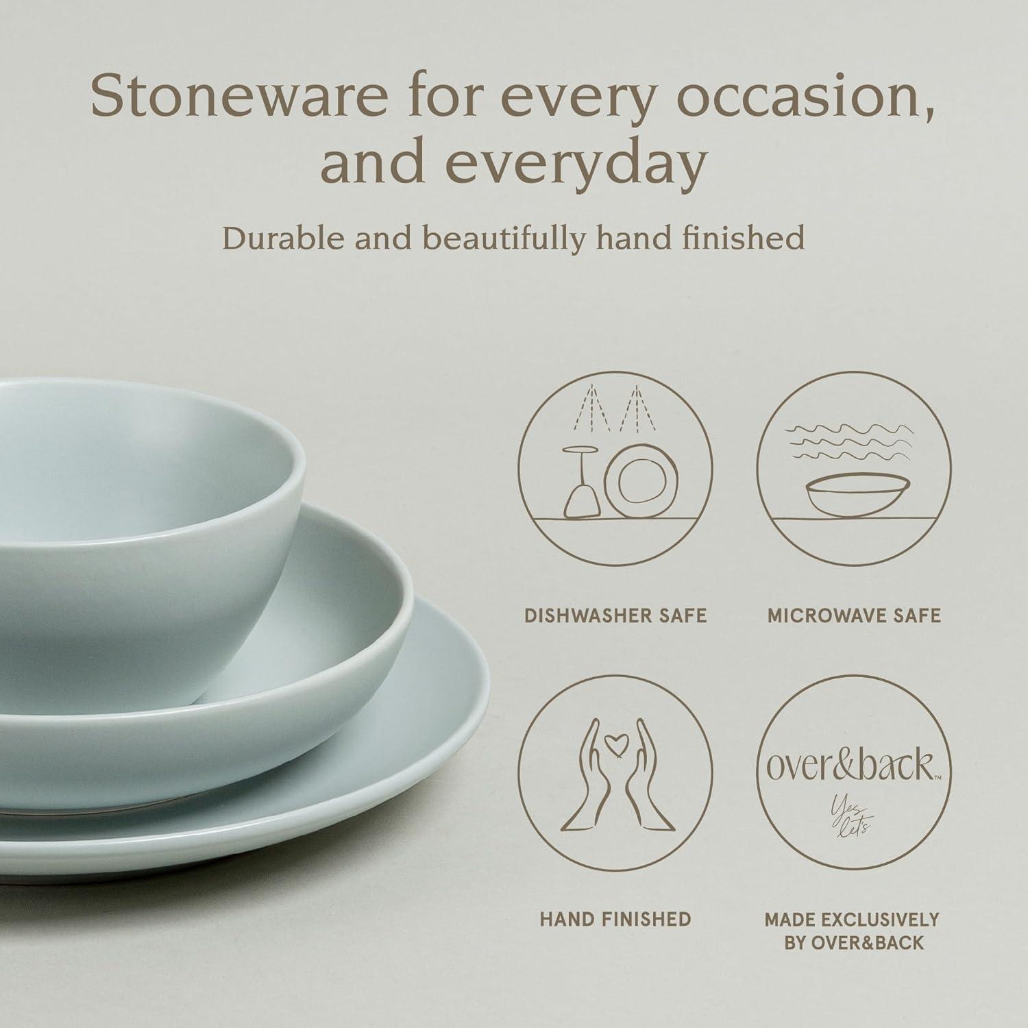 over&back Coupe Dinnerware Set - Stoneware Dishes - Comes with 4 Dinner Plates, 4 Cereal Bowls, and 4 Dinner Bowls - 12-Piece All-Occasion Place Settings - Semi-Matte Fog Blue