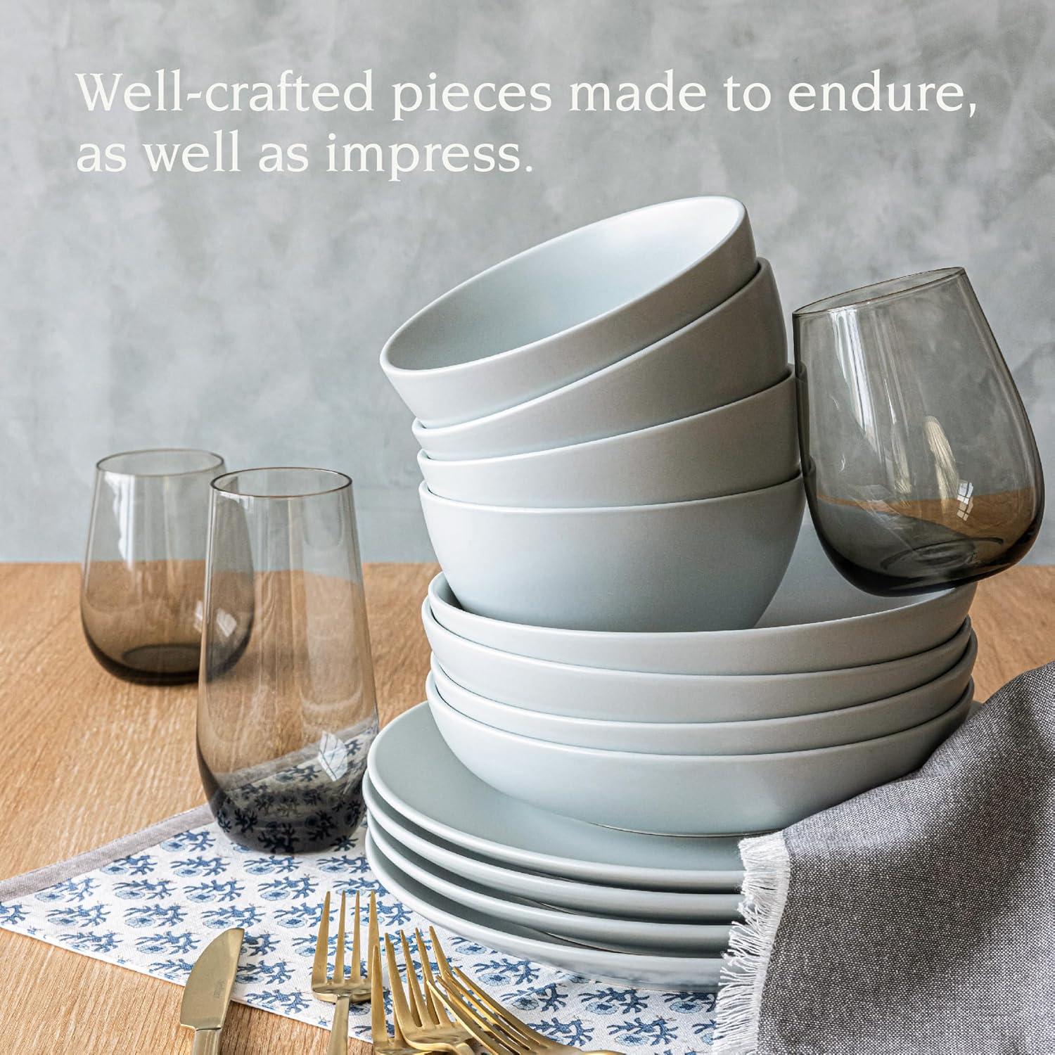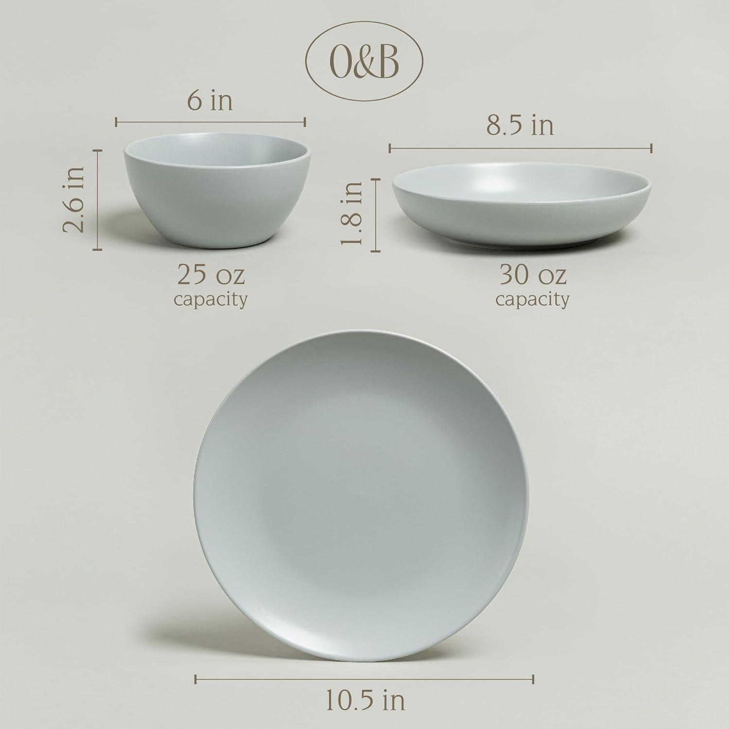 over&back Coupe Dinnerware Set – Stoneware Dishes – Comes with 4 Dinner Plates, 4 Cereal Bowls, and 4 Dinner Bowls – 12-Piece All-Occasion Place Settings – Semi-Matte Fog Blue
