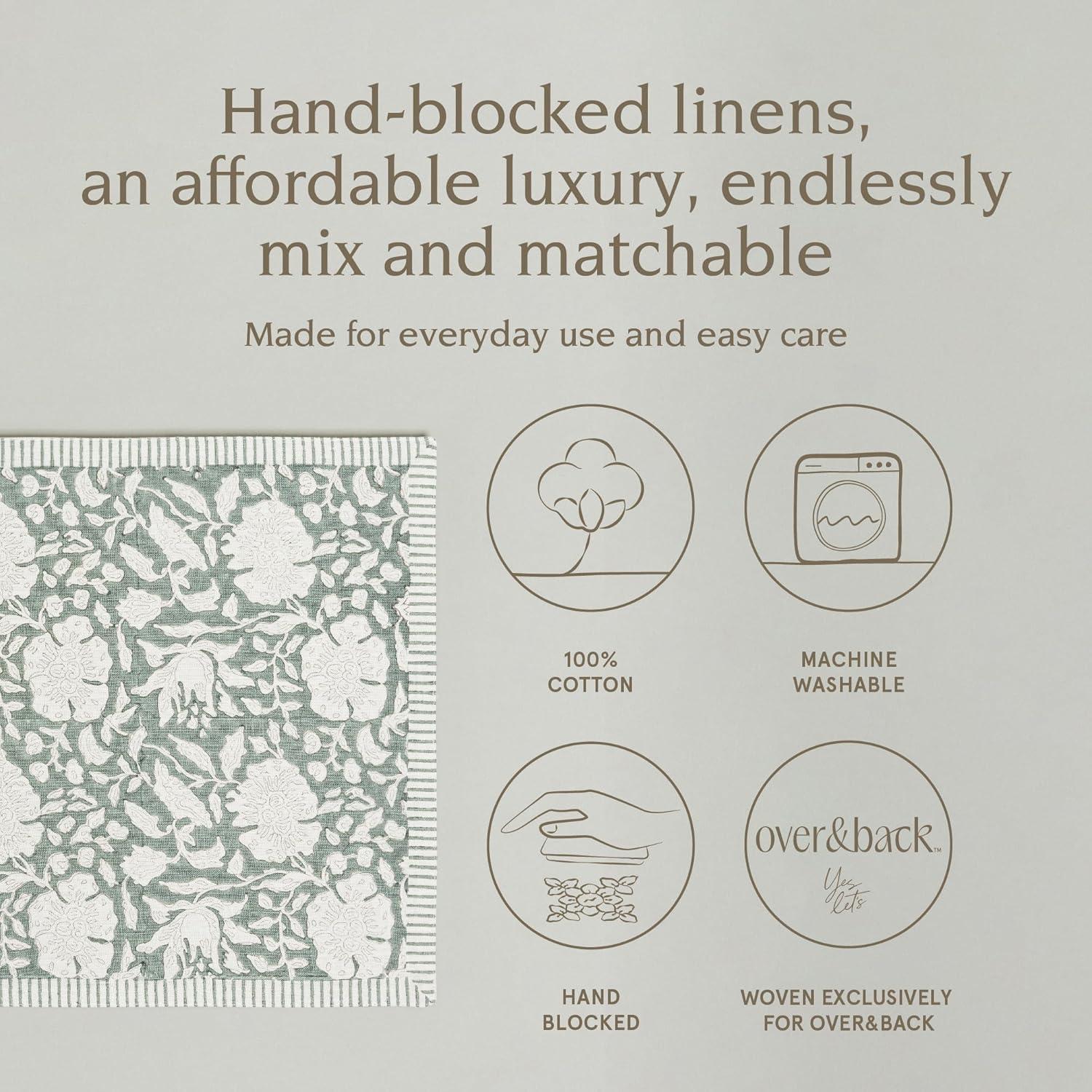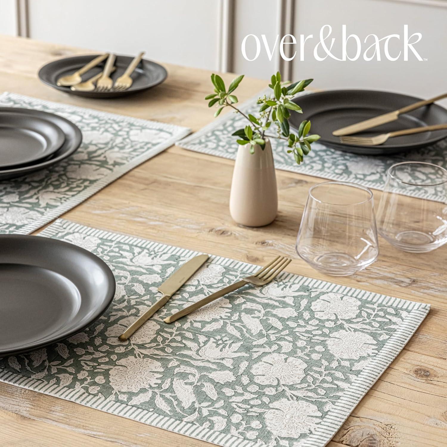 Over&Back Set of 4 Hand-Blocked Placemats – Colorful Dining Table Mat – Each Placemat is Unique – 100% Cotton – Machine Washable – Kitchen and Home Decor – Green Floral