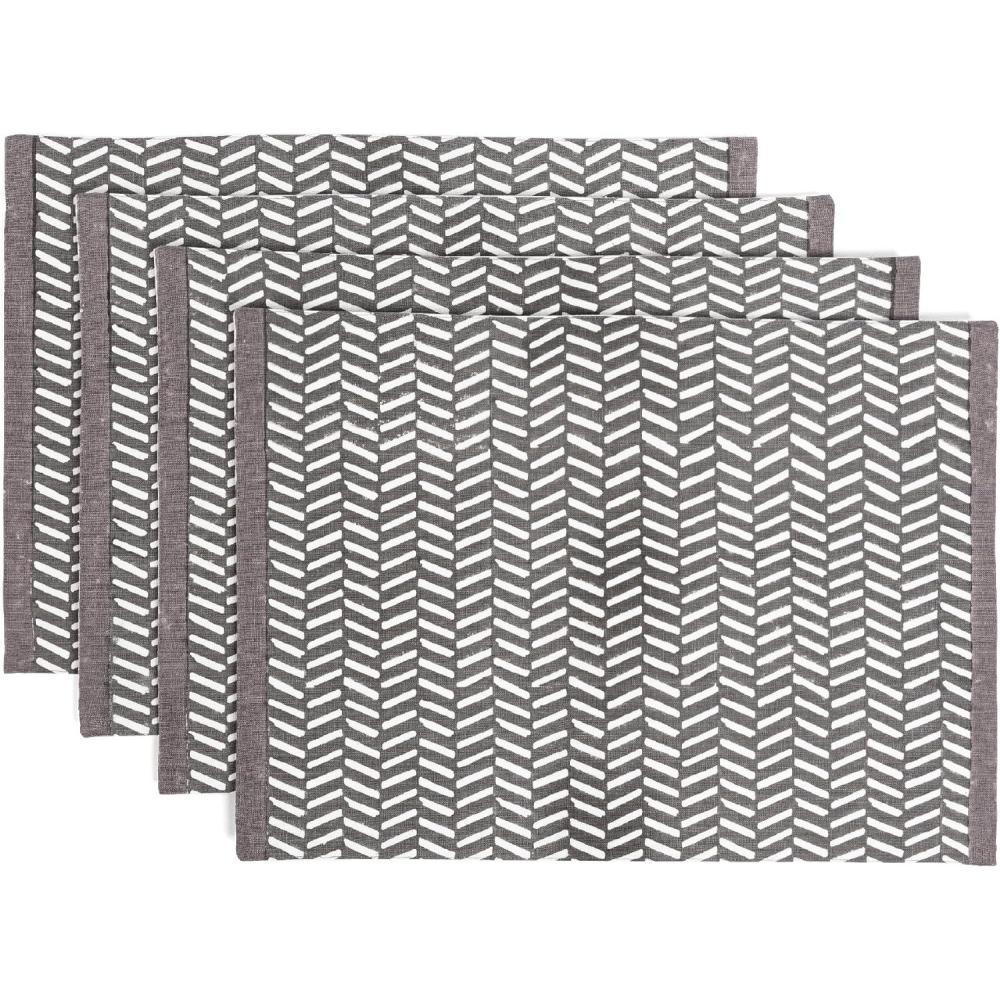 imageoverampampback Set of 4 HandBlocked Placemats  Colorful Dining Table Mat  Each Placemat is Unique  100 Cotton  Machine Washable  Kitchen and Home Decor  Pink BlossomGrey Herringbone