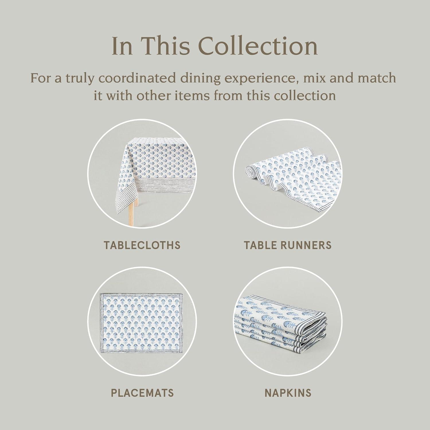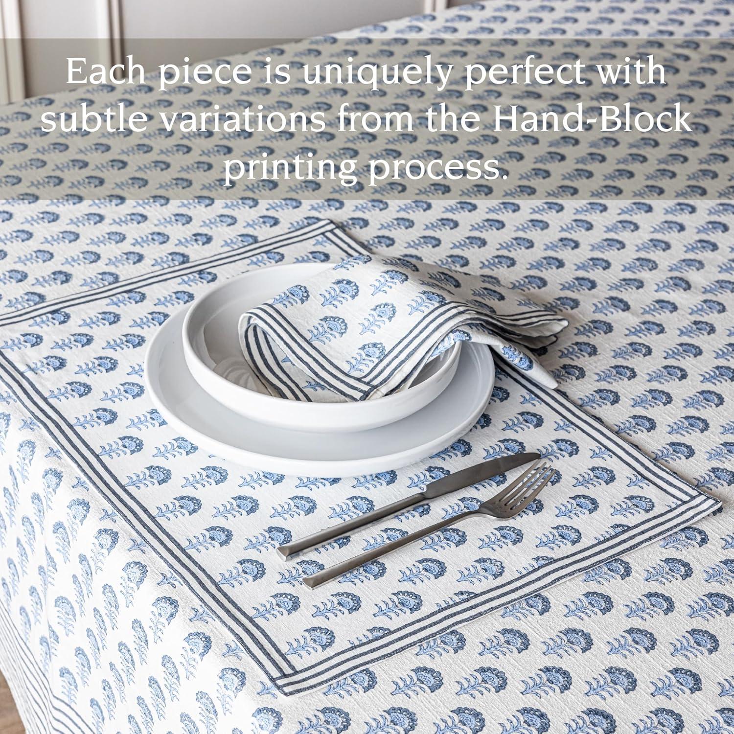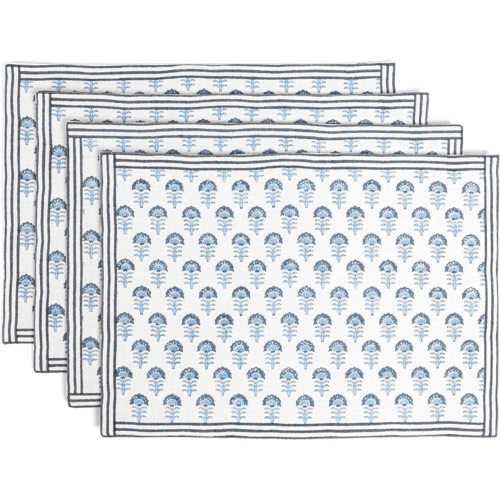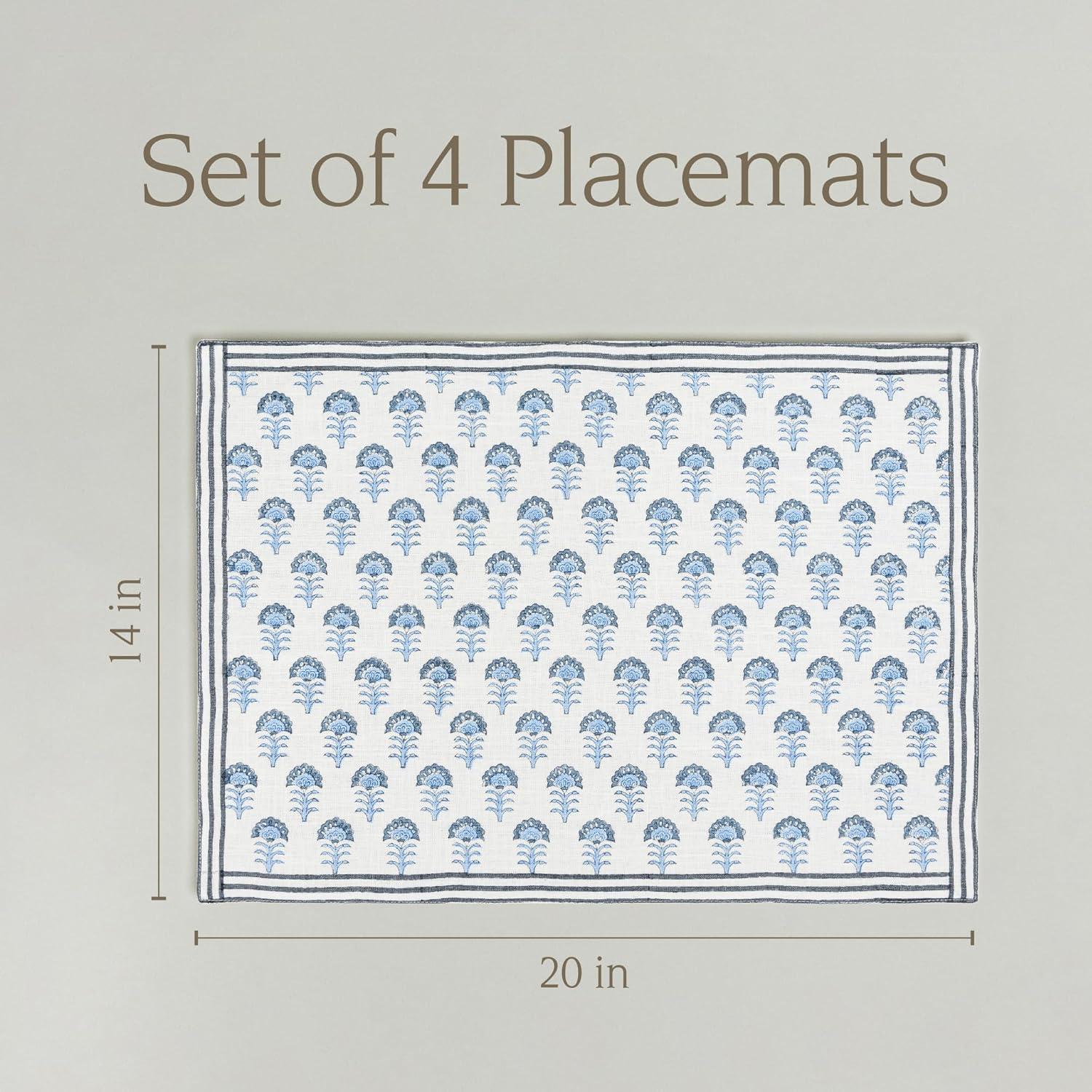 Over&Back Set of 4 Washed 100%-Linen Woven Placemats – Colorful Dining Table Mat – Machine Washable – Kitchen and Home Decor – Blue(Blue Bloom)