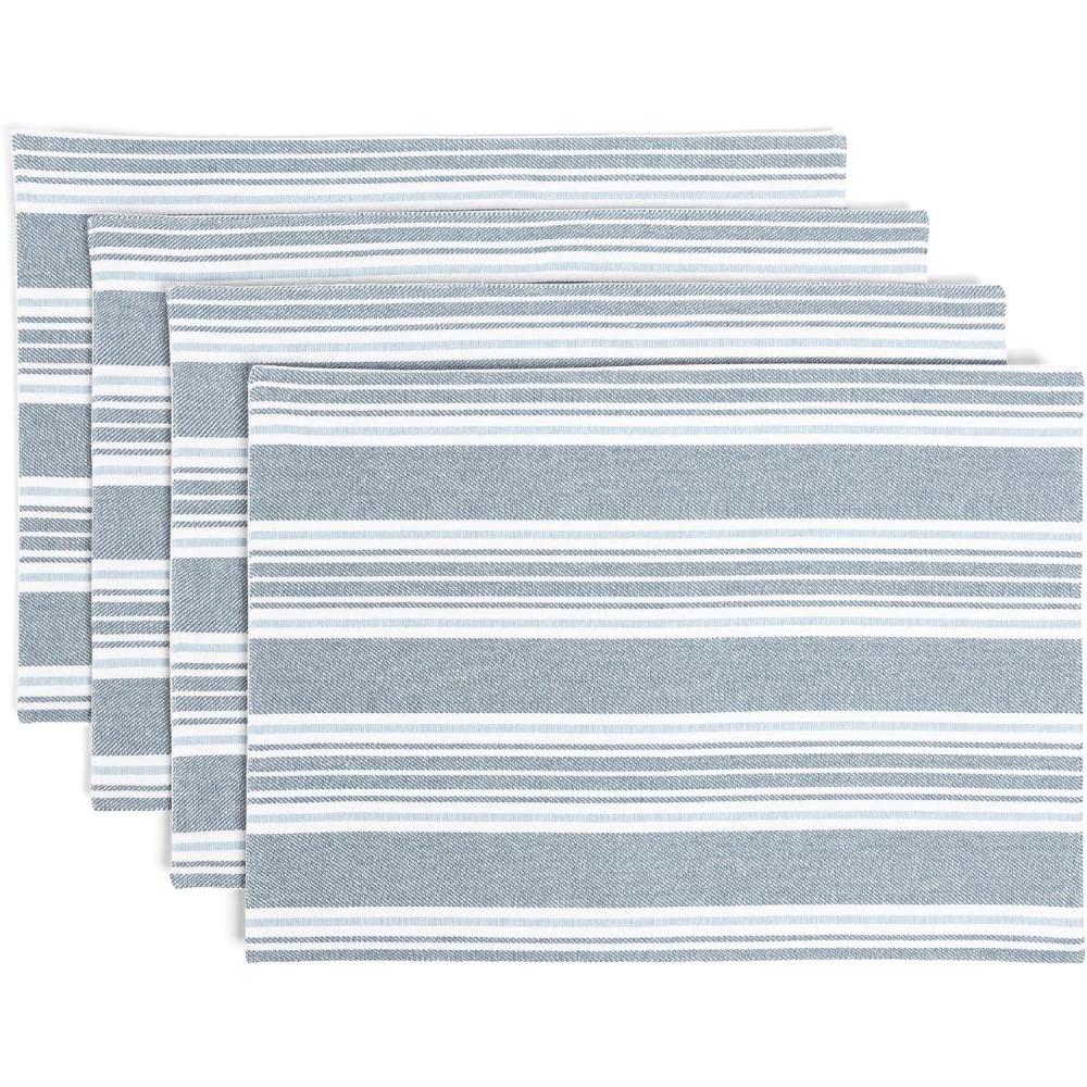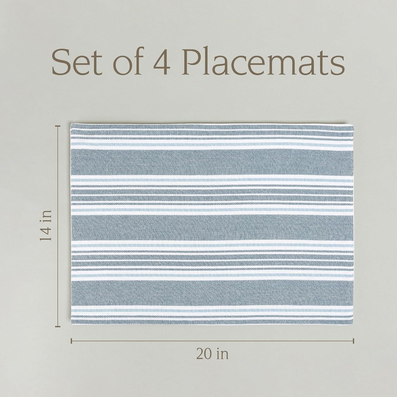 Over&Back Set of 4 Washed 100%-Linen Woven Placemats - Colorful Dining Table Mat - Machine Washable - Kitchen and Home Decor - Blue(Blue Woven Stripe)