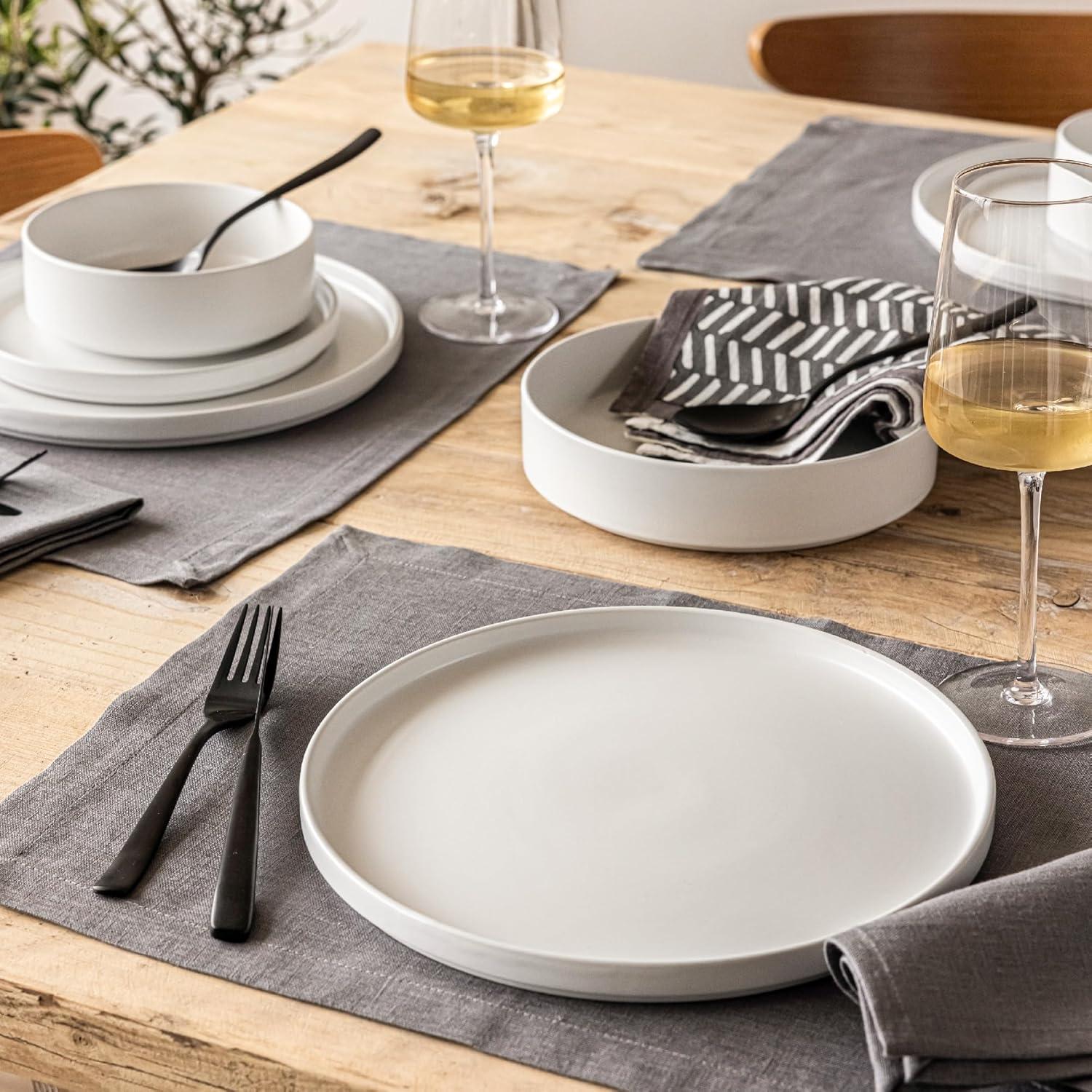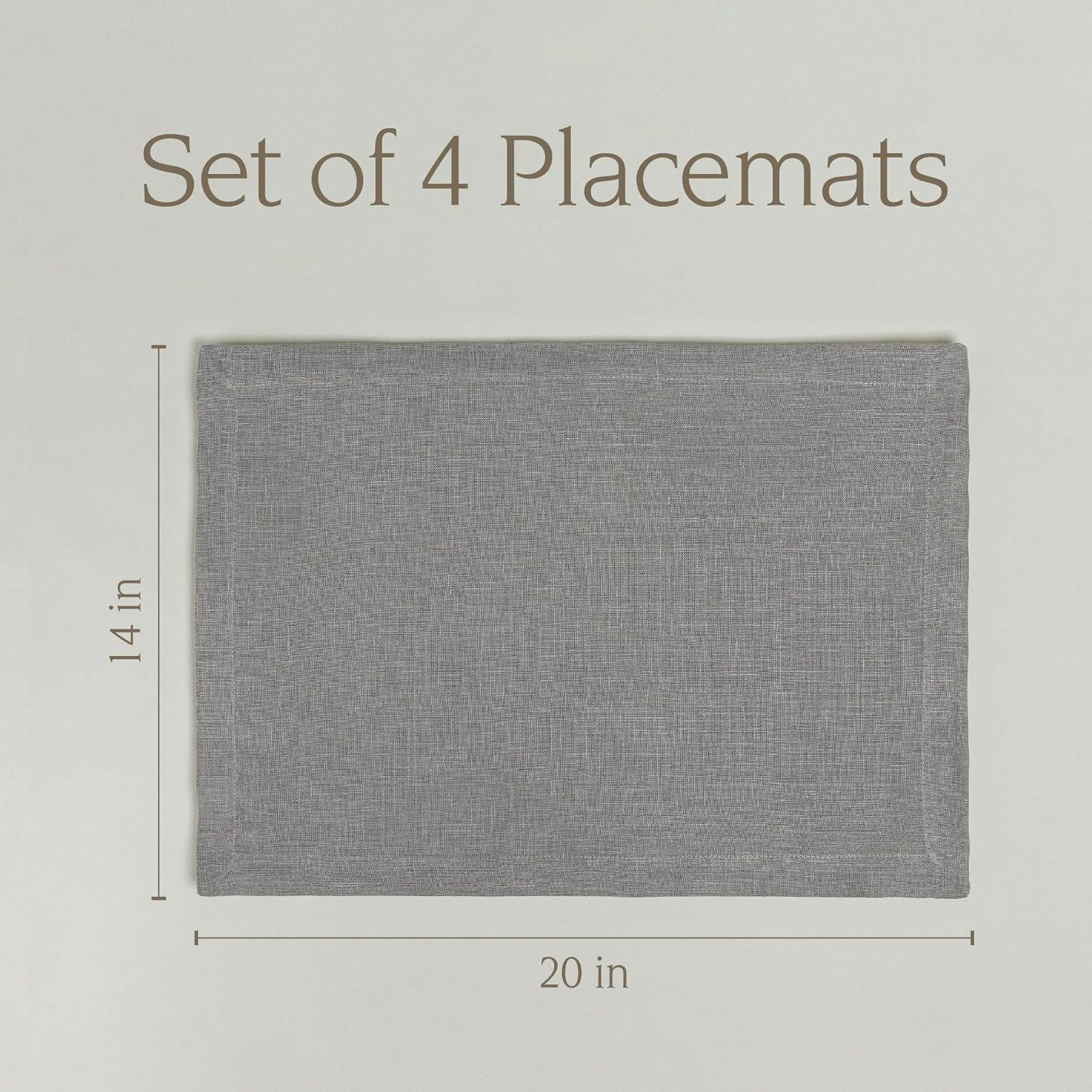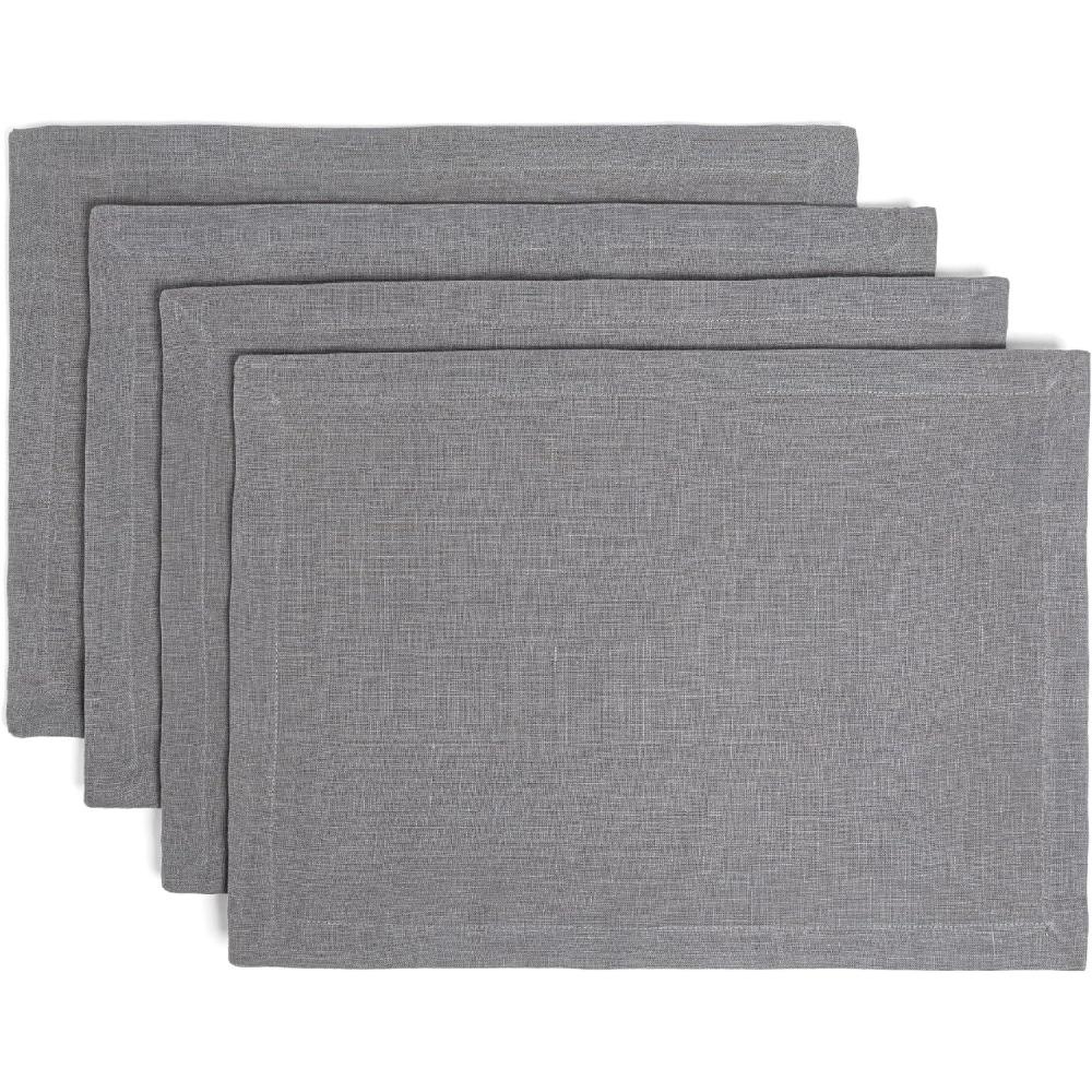 Over&Back Set of 4 Washed 100%-Linen Woven Placemats - Colorful Dining Table Mat - Machine Washable - Kitchen and Home Decor - Blue(Gray)