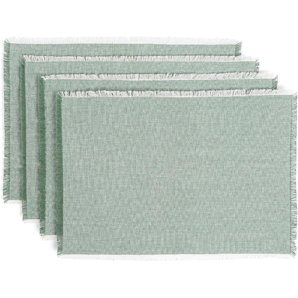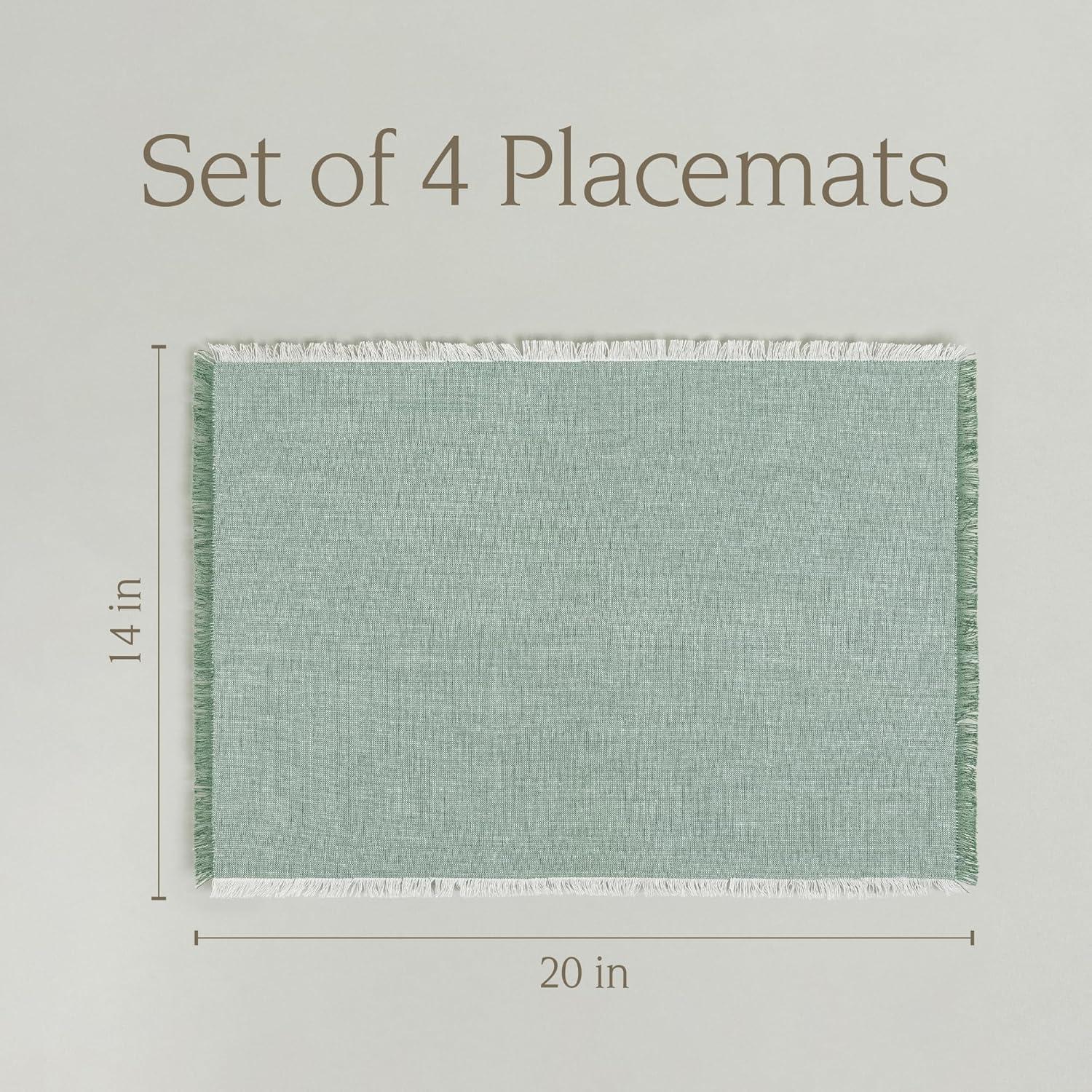 Over&Back Set of 4 Washed 100%-Linen Woven Placemats - Colorful Dining Table Mat - Machine Washable - Kitchen and Home Decor - Blue(Green Frayed)