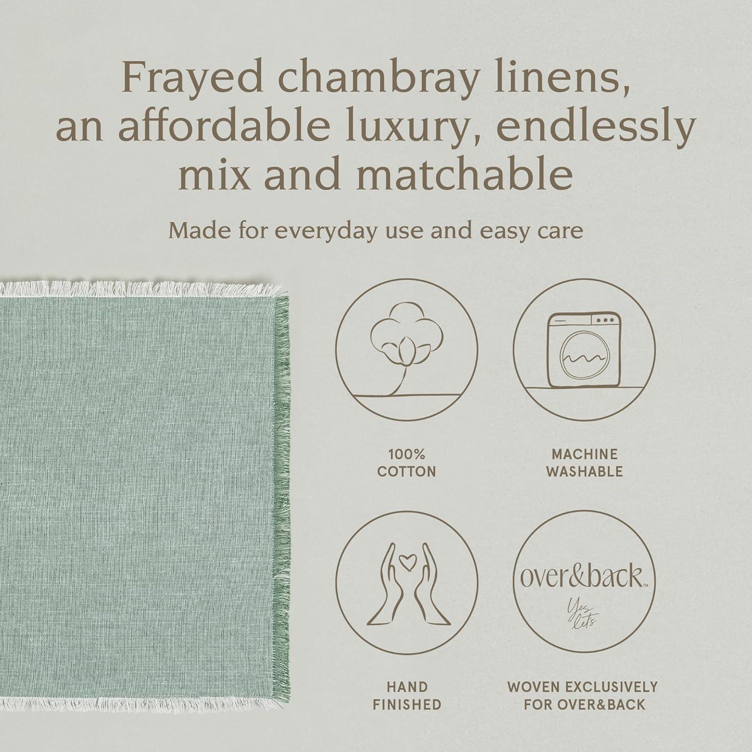 Over&Back Set of 4 Washed 100%-Linen Woven Placemats – Colorful Dining Table Mat – Machine Washable – Kitchen and Home Decor – Blue(Green Frayed)