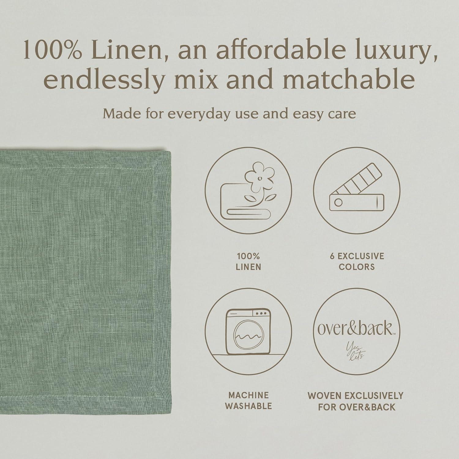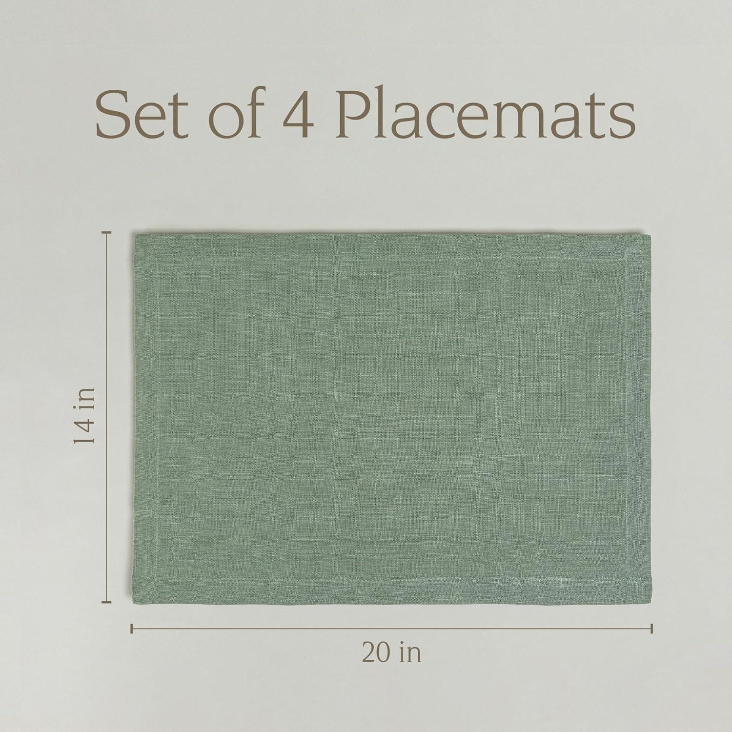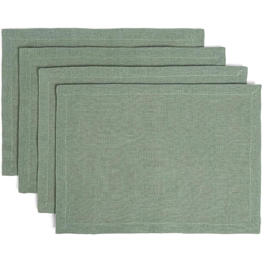 over&back Set of 4 Washed 100%-Linen Woven Placemats - Colorful Dining Table Mat - Machine Washable - Kitchen and Home Decor - Blue(Green)