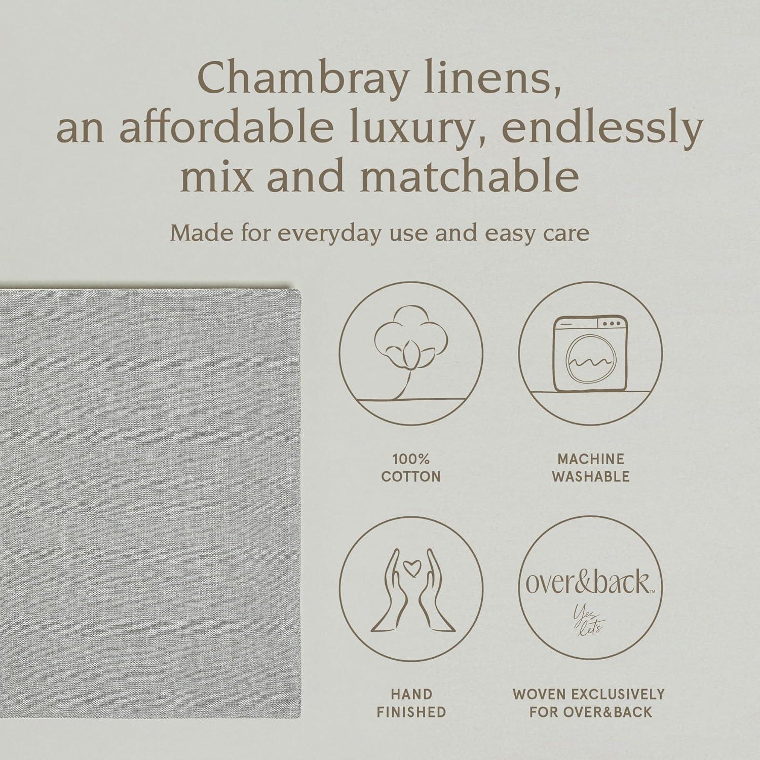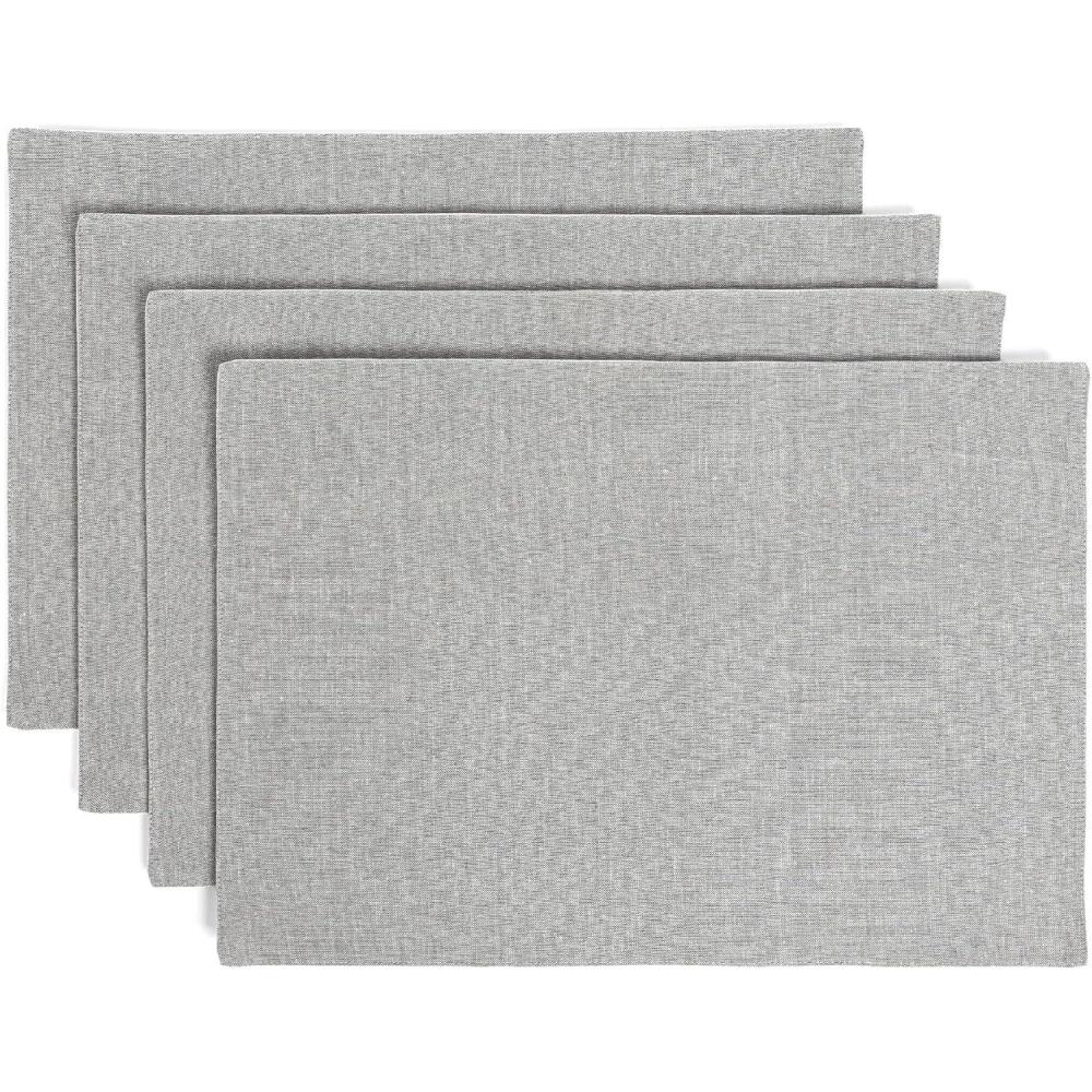 over&back Set of 4 Washed 100%-Linen Woven Placemats – Colorful Dining Table Mat – Machine Washable – Kitchen and Home Decor – Blue(Grey Chambray)