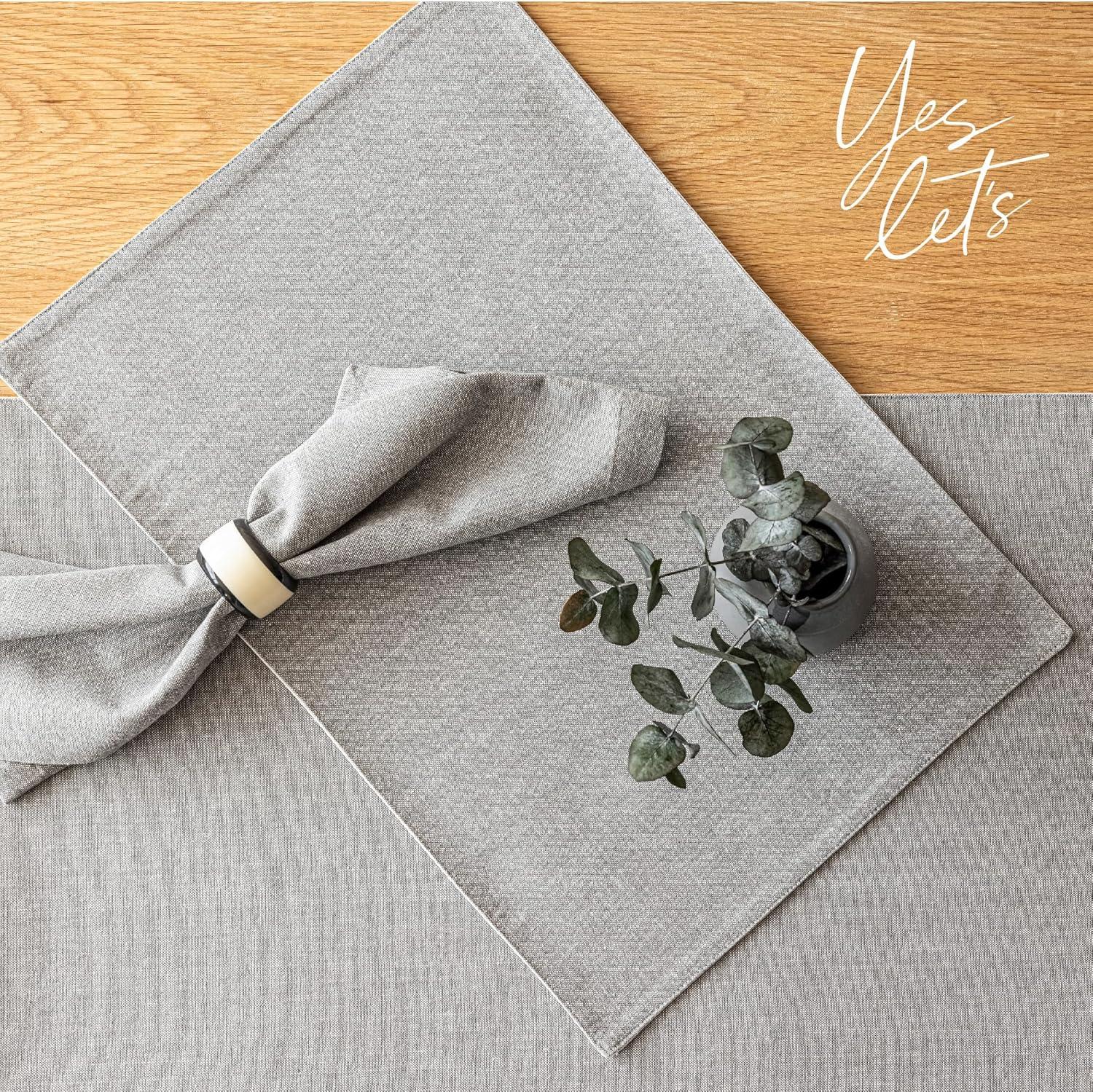 over&back Set of 4 Washed 100%-Linen Woven Placemats - Colorful Dining Table Mat - Machine Washable - Kitchen and Home Decor - Blue(Grey Chambray)