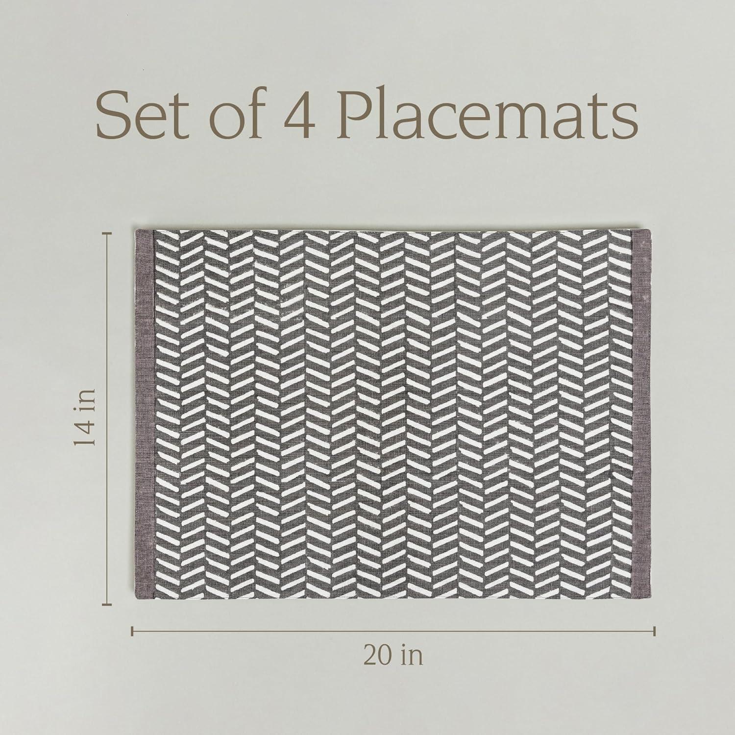 Over&Back Set of 4 Washed 100%-Linen Woven Placemats - Colorful Dining Table Mat - Machine Washable - Kitchen and Home Decor - Blue(Grey Herringbone)
