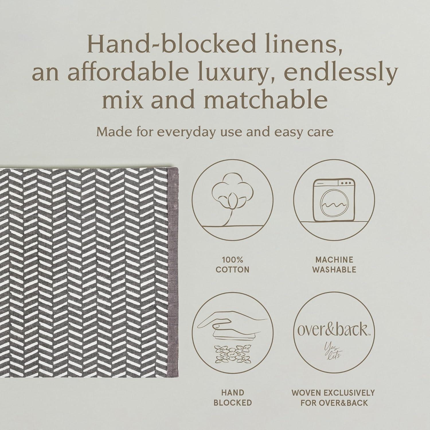 Over&Back Set of 4 Washed 100%-Linen Woven Placemats – Colorful Dining Table Mat – Machine Washable – Kitchen and Home Decor – Blue(Grey Herringbone)