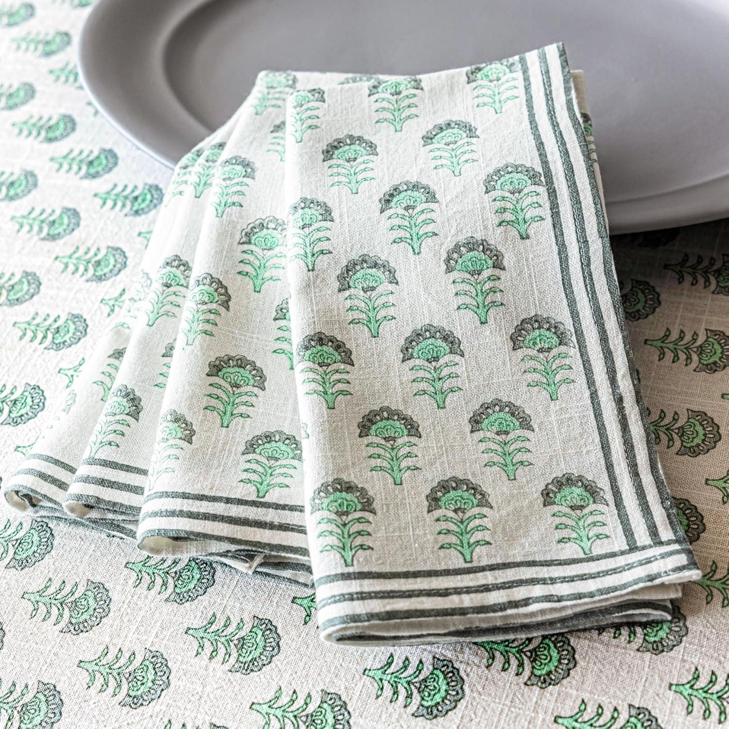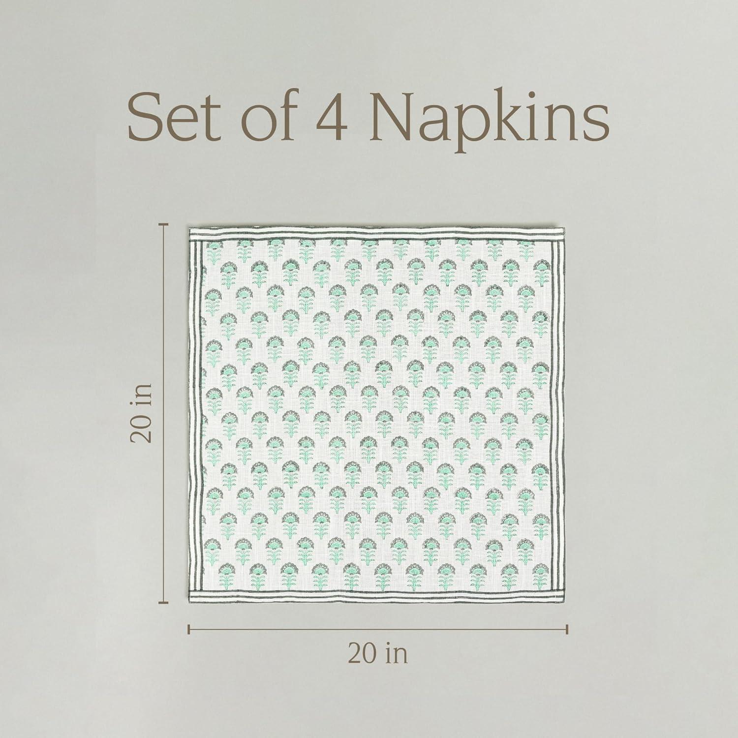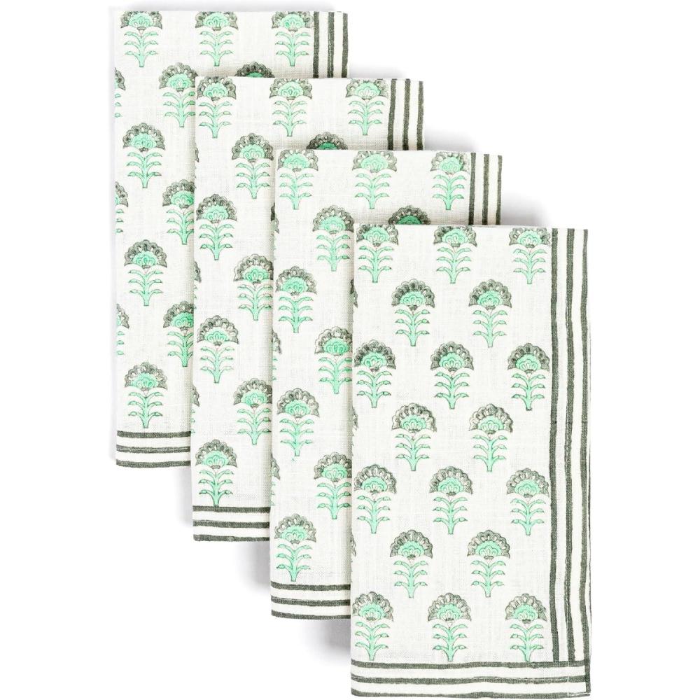 over&back Washed 100% Linen Cloth Napkins - Washable Napkins Set for Mixing, Matching, and Creating a Custom Home Decor Tablescape - Blue(Green Flower)